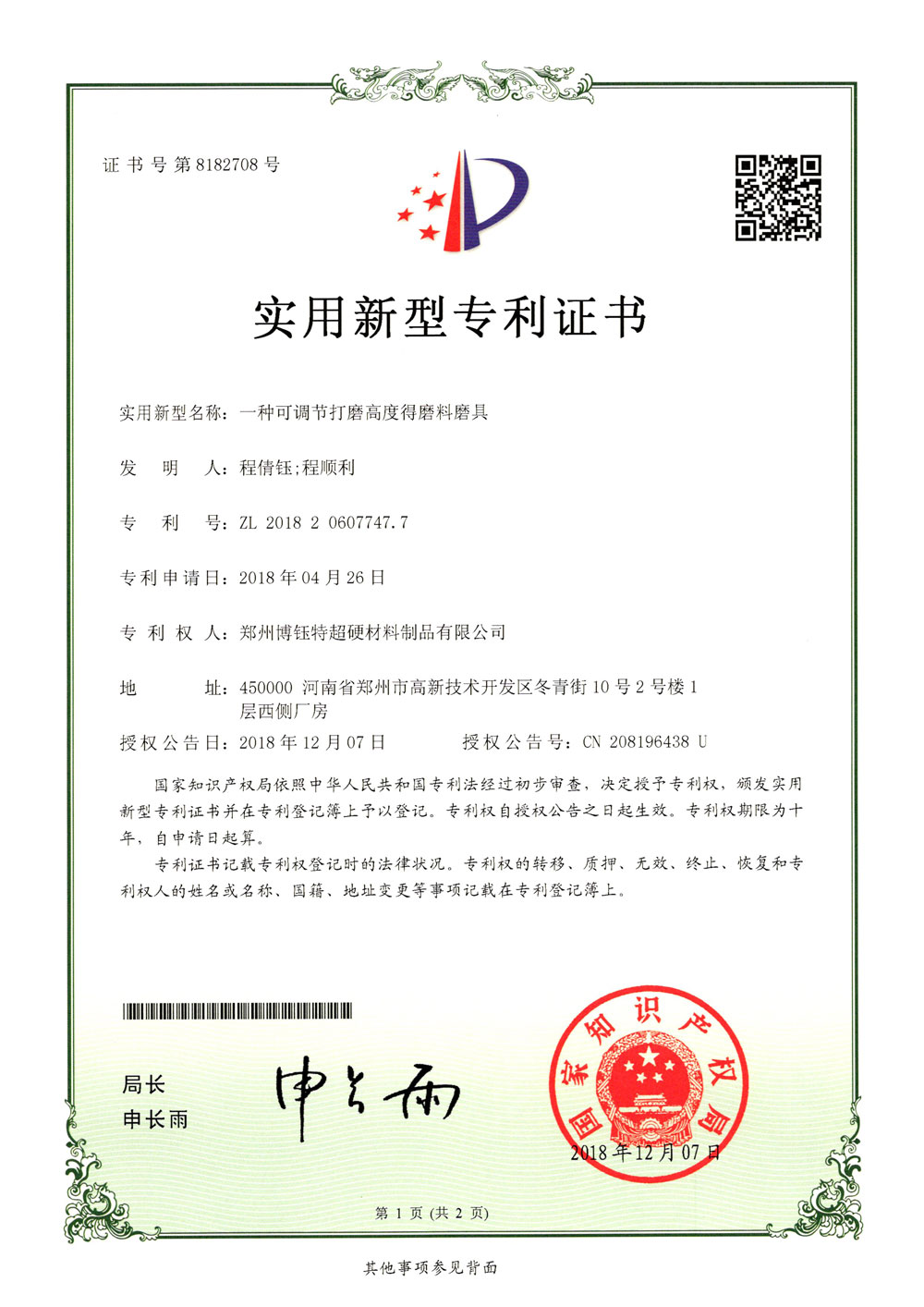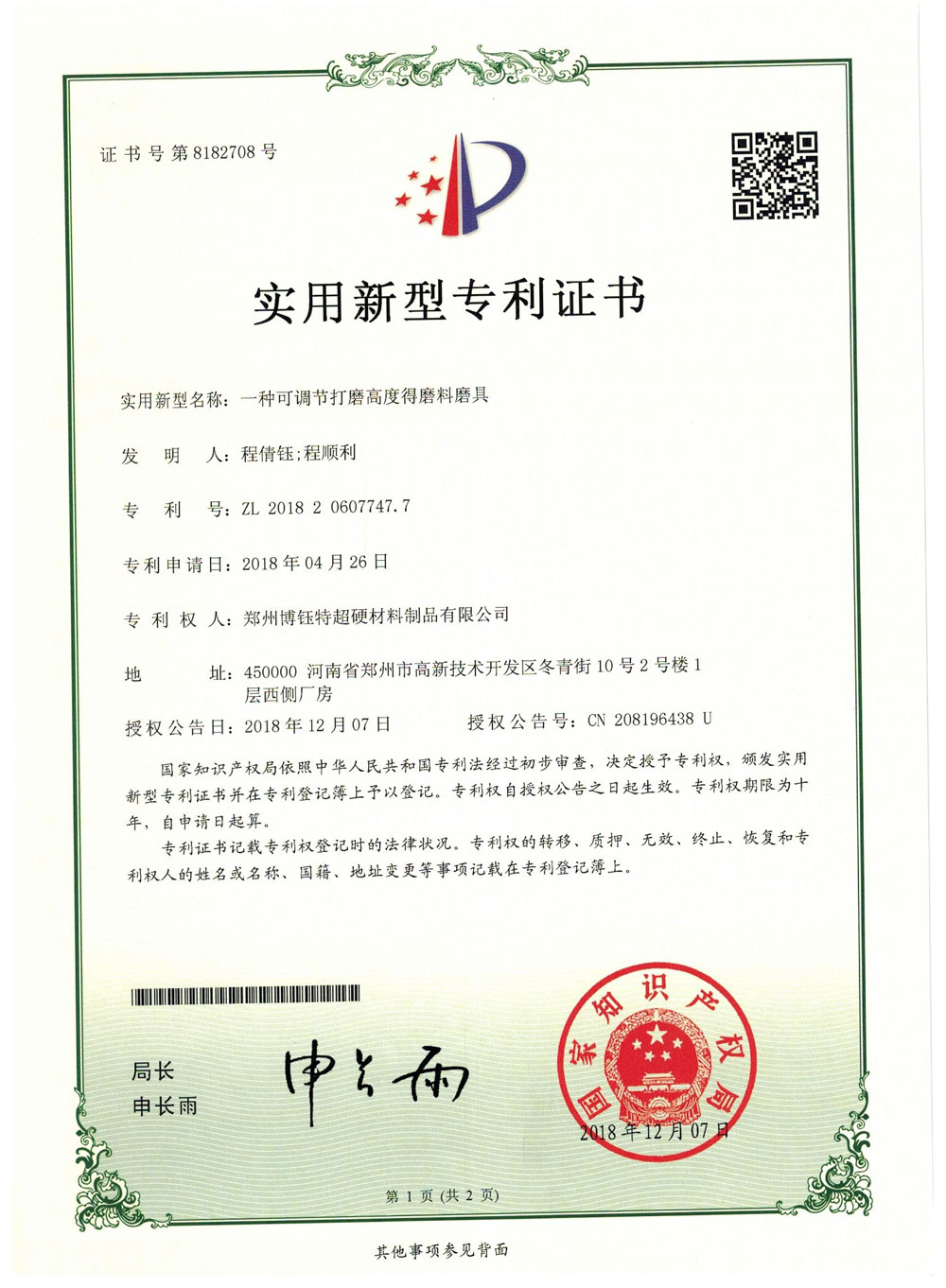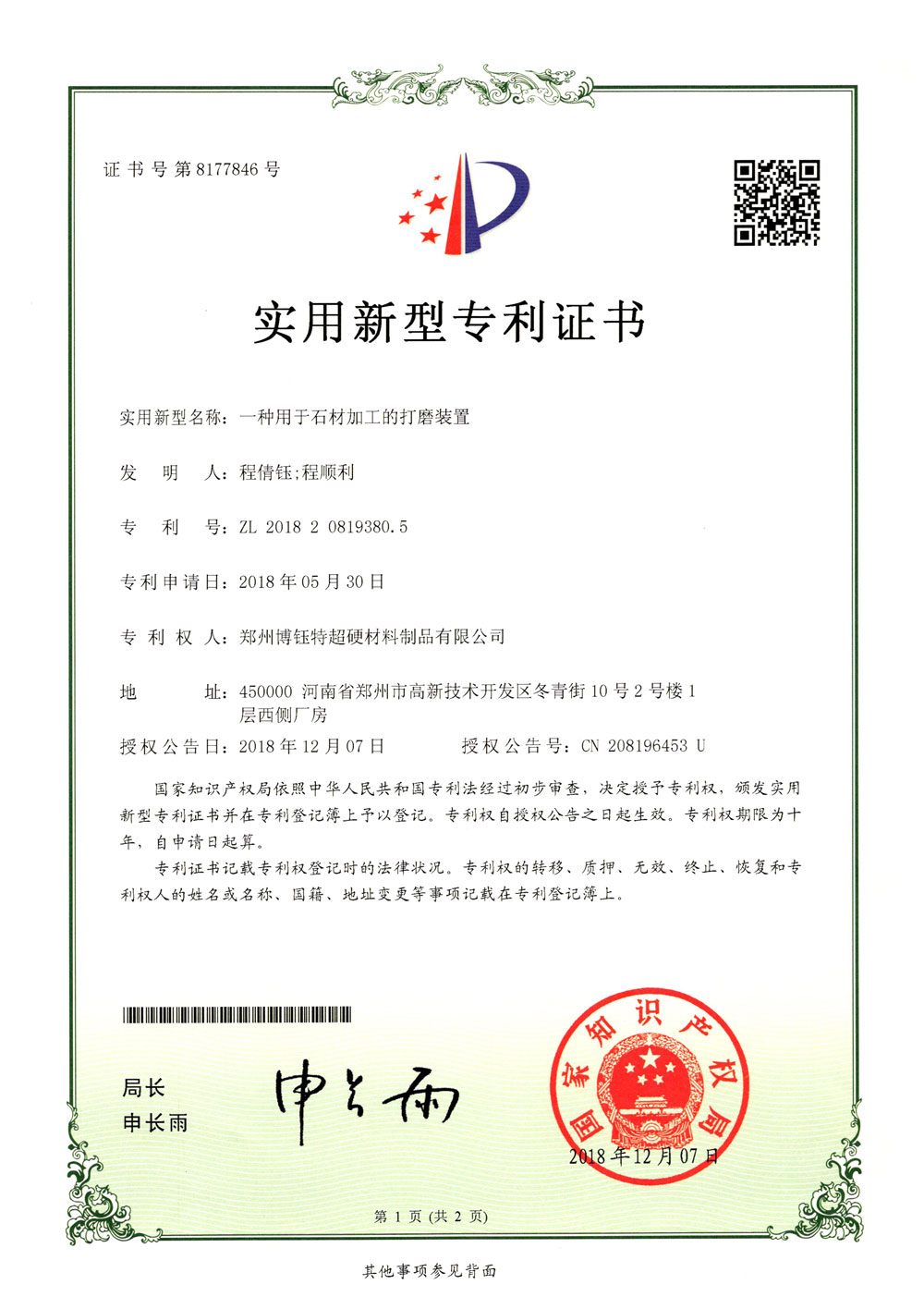 博爾德集團(tuán)旗下專利證書(shū)展示